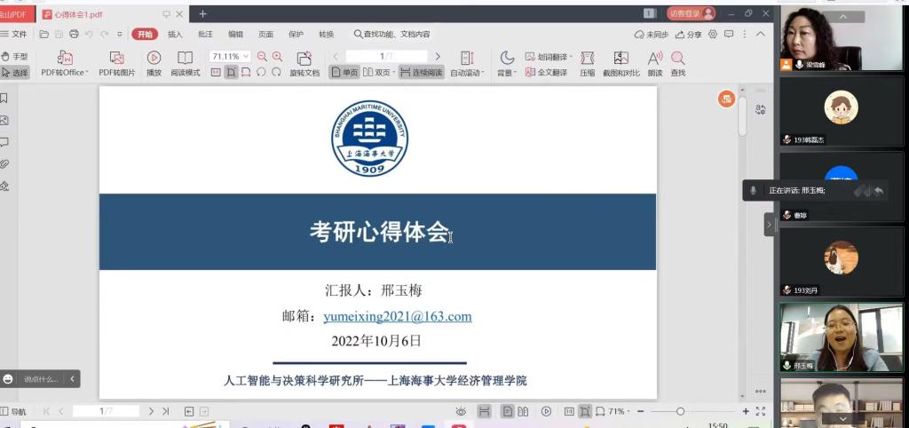 会议还邀请了两位在读博士员工和18级读研的两位同学分别分享了考研经验,对考研的前期准备、考研阶段复习、考研注意事项以及考研后可能遇到的一系列问题进行了详细介绍。
