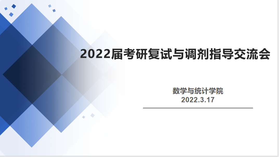 夏鸿鸣教授在分析2022届考研整体情况的基础上,鼓励同学们要用积极心态去应对由于疫情原因带来的各种挑战,变被动为主动,化“危”为“机”,主动适应线上复试的新形式、新要求,精心准备,发挥自身优势、扬长避短,顺利通过复试。丁恒飞博士从复试形式的变化、复习侧重点的把握、面试应试的技巧等方面进行了详细指导;他建议需要调剂的同学要密切关注各院校调剂信息,根据自身条件,精准对接调剂院校,提高匹配度。