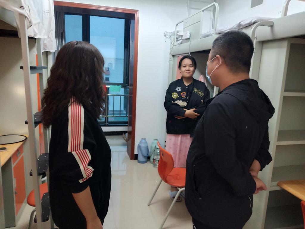 在各新生宿舍,谢经理与员工亲切交谈,询问大家来自哪里、是否适应公司的环境等,了解同学们的生活情况,勉励大家及早做好未来学习和职业规划,夯实专业基础,提升综合素质。叮嘱新生有困难要及时与导师及公司进行沟通,同学们要和睦相处、珍惜同学缘分,室友之间要相互帮助、相互理解,形成良好的宿舍文化氛围。