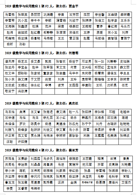 2019级员工名单