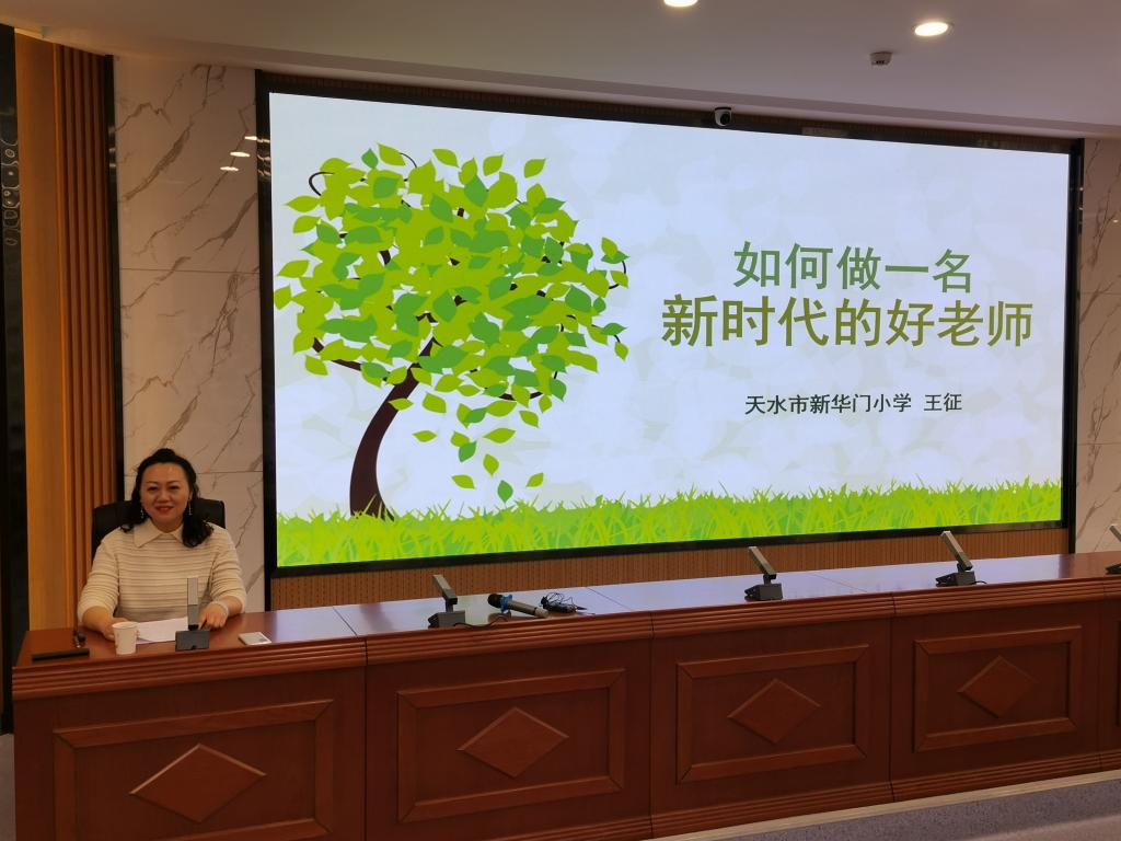 天水市新华门小学王征老师作了题为《如何做一名新时代的好老师》的培训讲座。她结合自己多年的工作经验,解读了四有好老师的标准。列举自己班主任工作中亲身经历的一件件感人至深的事例,不仅使大家体会到师者可以成就员工未来的深意,也让在座的同学们更加坚定了做一名新时代好老师的信念。会后,同学们就自己的感悟和收获与王老师进行了交流。