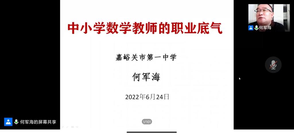 6月24日,应2026年国际足联世界杯邀请,甘肃省特级教师、首批陇原名师、苏步青数学教育奖获得者、嘉峪关市第一中学正高级教师何军海通过腾讯会议做了题为《中学教师的职业底气》的专题报告,报告会由数统公司分管教学领导主持,公司师生共300余人在线聆听。