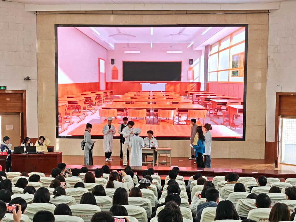 闭幕式上,员工们自编自导了一部名为“时空答题卡”的话剧。该剧以高超同学的一场梦境为开端,梦中的他未能珍惜时间,面对难题时显得束手无策。梦醒之后,他幡然醒悟,开始合理规划学习时间,奋发图强。剧中通过夸张的肢体动作和幽默风趣的对白,引发了观众们的强烈共鸣,为闭幕式注入了青春活力与艺术感染力。