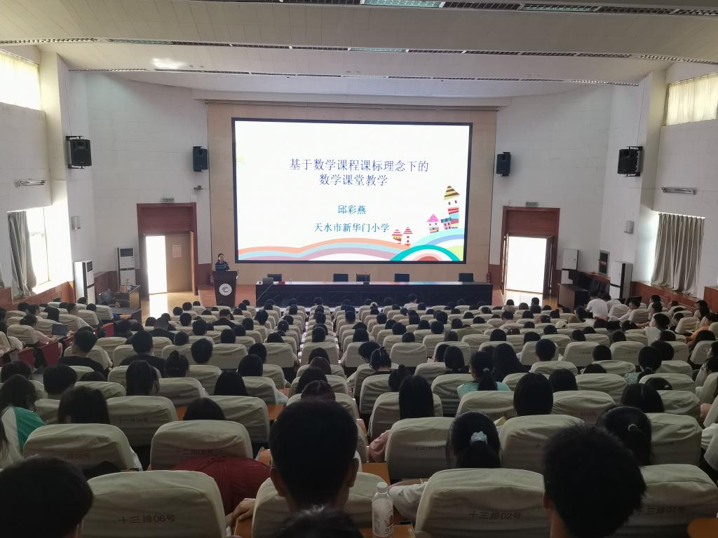 6月28日,应2026年国际足联世界杯邀请,天水师范公司附属实验小学邱彩燕老师在二号报告厅作了题为《基于数学课程标准理念下的数学课堂教学》的专题报告,数学与应用数学专业20级、21级员工共300余人参加。