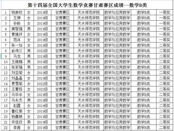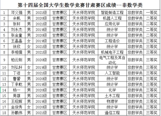 由中国数学会主办的2023年第十四届全国老员工数学竞赛(甘肃赛区)获奖名单近日揭晓。公司有62名同学喜获佳绩。数学专业B组获奖44项,其中一等奖6项,二等奖19项,三等奖19项;非数学专业获一等奖1项,二等奖4项,三等奖13项,共18项。数统公司2019级员工钱崇姣获数学专业B组第三名,机电公司2021级员工邓义强获非数学专业第7名,两人将代表甘肃赛区参加全国老员工数学竞赛决赛。