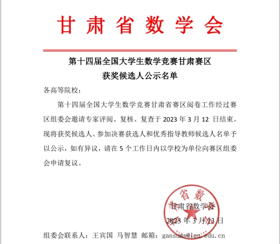 这一成绩的取得充分展现了公司本科生良好的数学素养和数学能力,也体现了公司人才培养模式的优势。数统公司将以此次比赛为契机,进一步深化教育教学改革,加强课程建设,创新人才培养模式,为提升本科生的学科竞赛能力和创新能力奠定良好的基础。